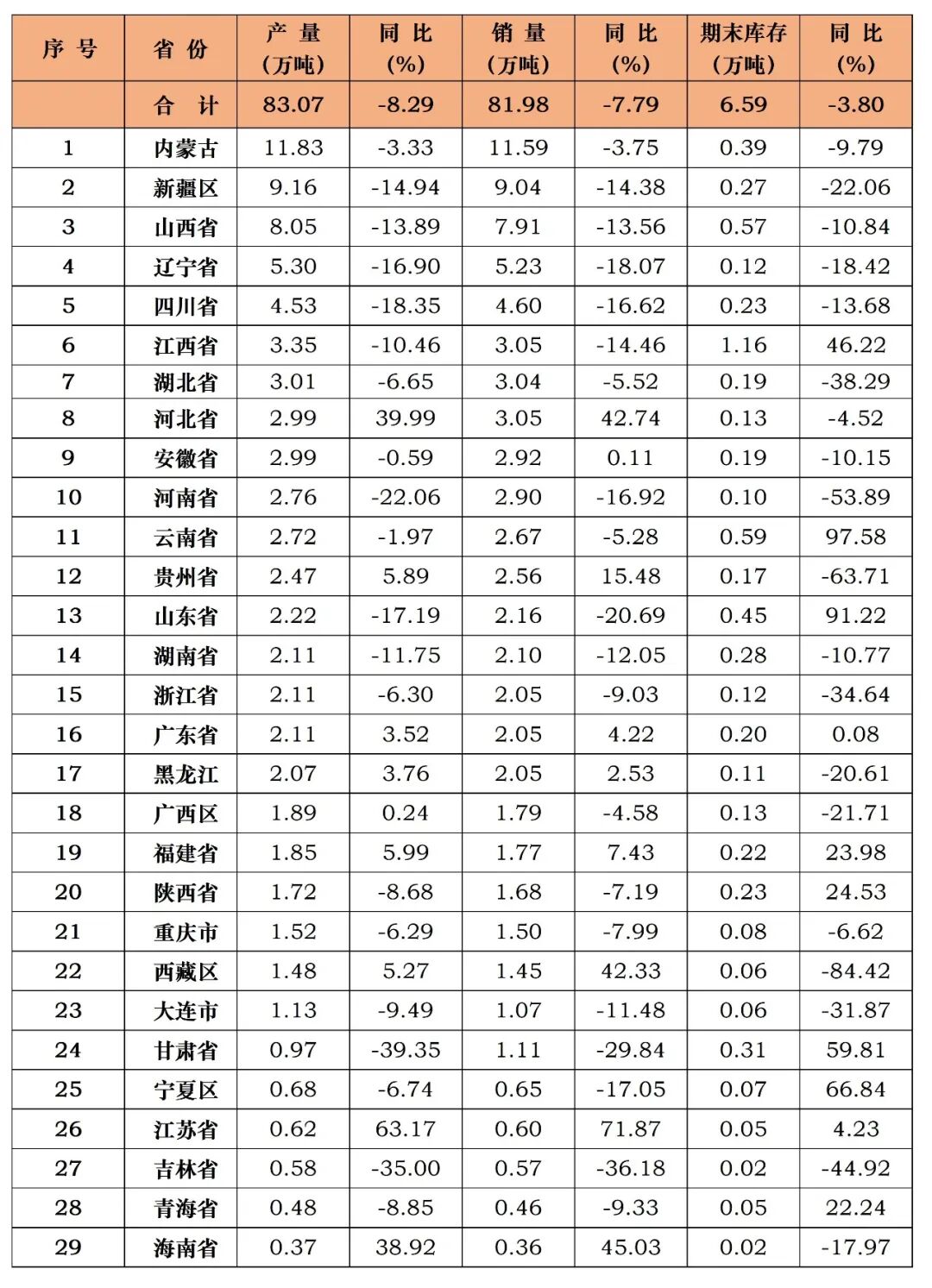 二、产品产销存及品种结构变化情况1.产品产销情况